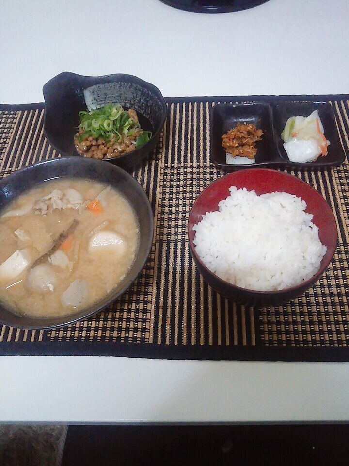 ご飯と豚汁入れる容器逆やろ汁物重い容器やとしんどいわ