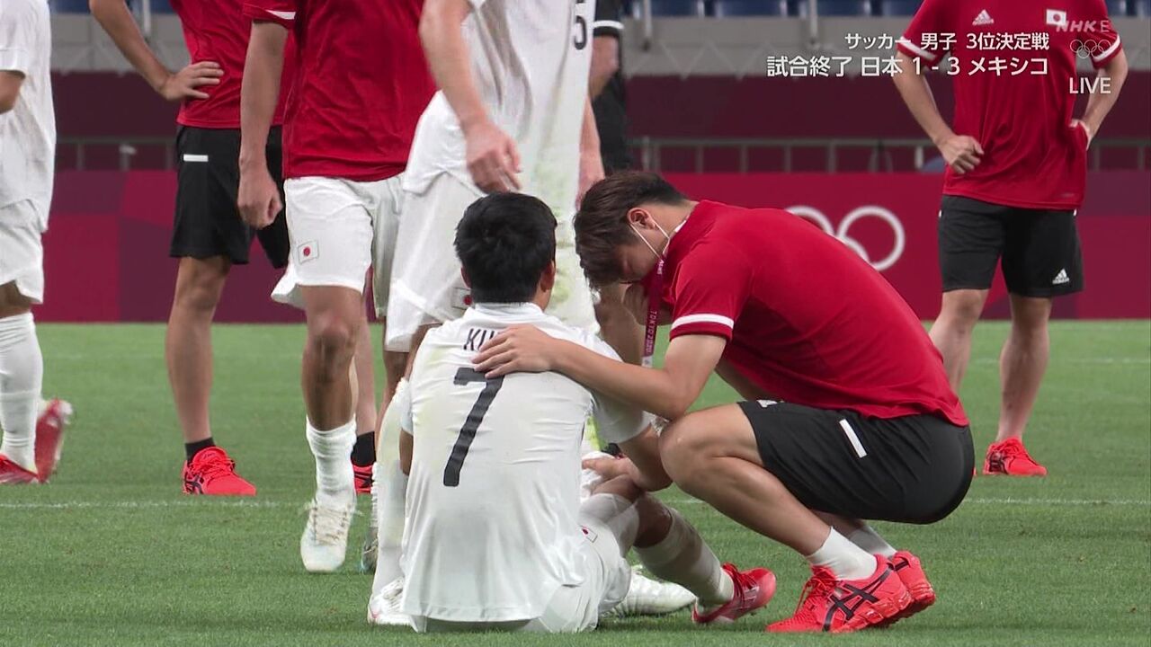 号泣する久保さんに駆け寄る橋岡